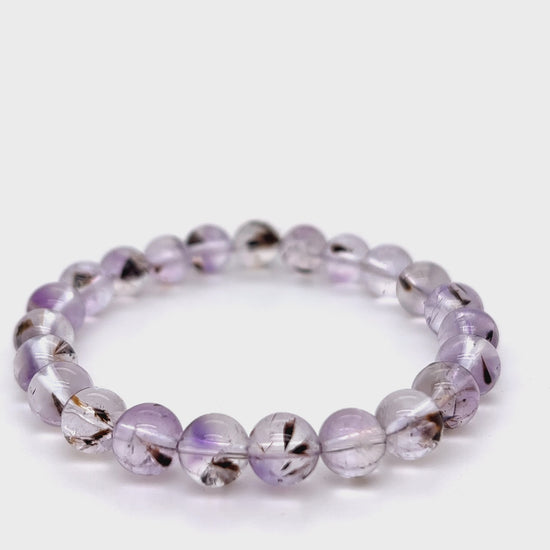 A beautiful and unique combination of light purple amethyst with rutiles. Each bead is different and shows how amazing mother nature can be! Beads are approximately 8mm in size.