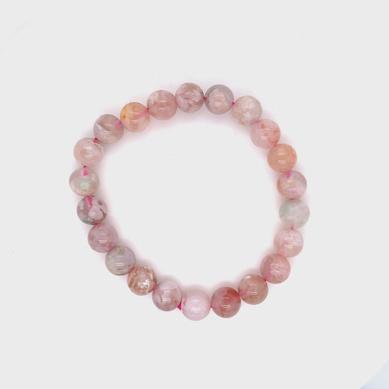 Create a timeless and elegant fashion statement with our Flower Agate Bracelet. Featuring beautiful flowers, each piece has a light hue of pink to add a beautiful pop of color to any outfit. Wear it casually or dress up your evening gowns--- the versatility of these polka dot agates ensures you'll never stop wearing it.