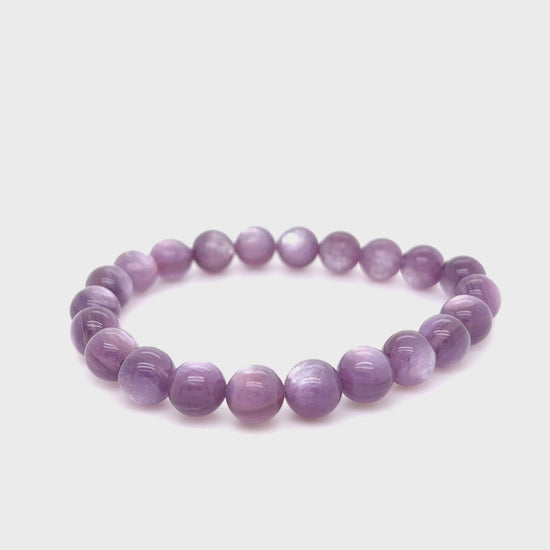 High quality Gem Lepidolite Bracelet with incredible flash! You don't want to miss out on these beauties! Available in both 7mm or 8mm bead size.