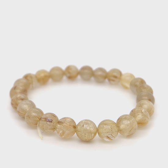 Amazing gold rutile in quartz bracelet. The beads are of high quality that allow you to see each strand of the golden rutile. Available in either 4mm or 8mm beads.