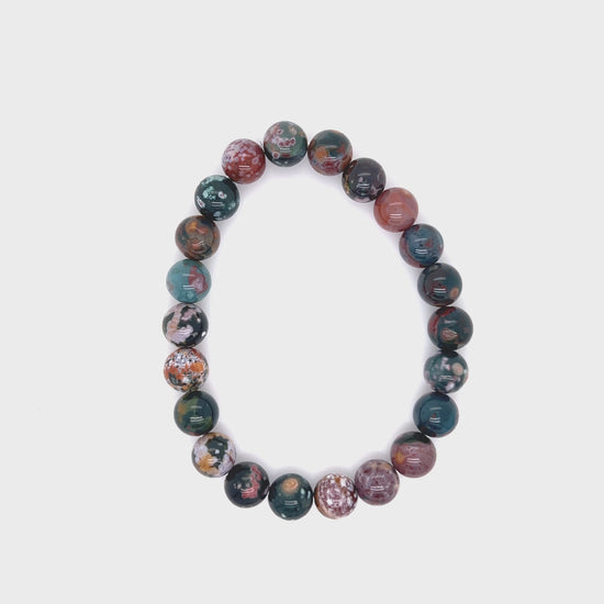 This Ocean Jasper bracelet is made from the rare Marovato Ocean Jasper in Madagascar, with beautiful colors and shapes. It is a great accessory for many occasions, from casual to formal.