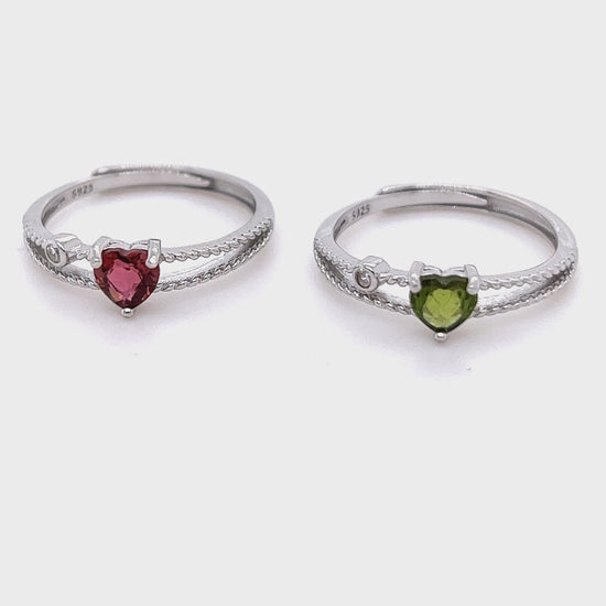 This unique heart-shaped tourmaline ring showcases how beautiful this stone is. Set in a S.925 Silver setting, the gems color will pop and sparkle.